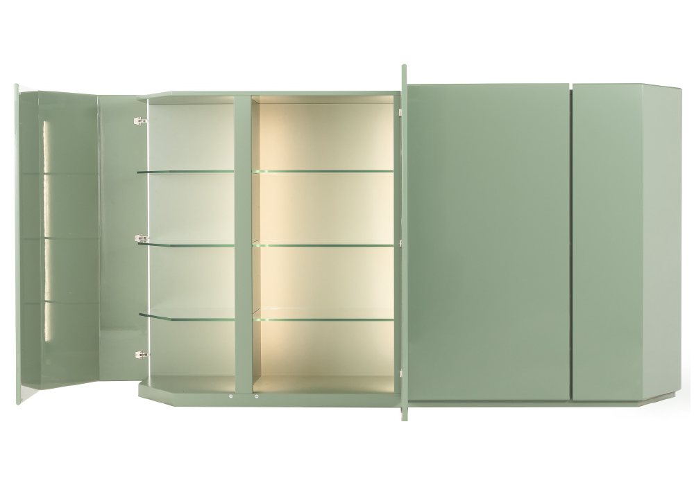 Bramante 4.1 firmato da Kazuhide Takahama per Cassina è un mobile contenitore con 3 ripiani interni in vetro e illuminazione a LED. Il modello 2019 mantiene inalterate le forme e le dimensioni ma cambia profondamente la struttura costruttiva, eliminando i moduli, rendendola così più contemporanea ed aggiungendo una nuova illuminazione interna.