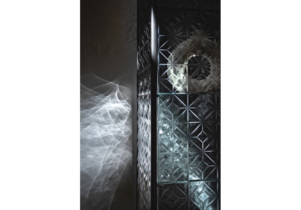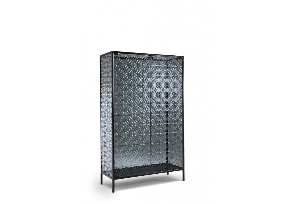 Echo firmata da Marcel Wanders Studio per Fiam è una vetrina con struttura in alluminio verniciato, base in vetro extralight retroverniciato in tinta con la struttura, corpo vetrina ed anta in vetro. Disponibile anche nella versione con sistema di illuminazione LED integrato nei montanti frontali.