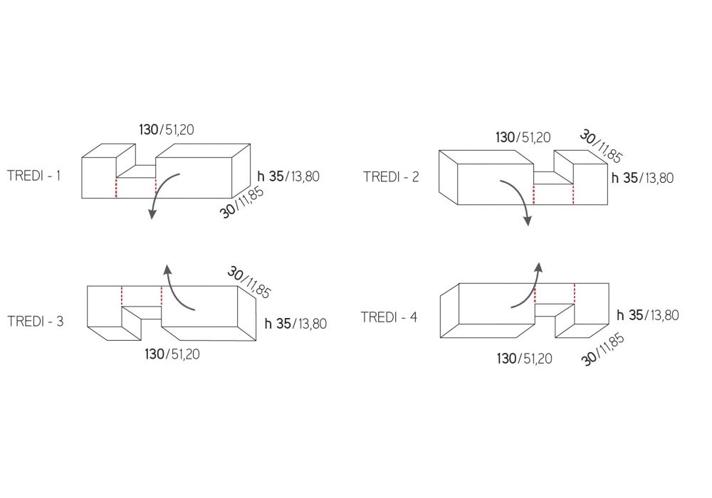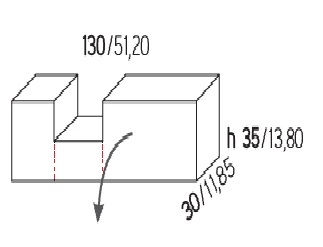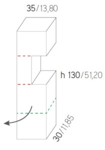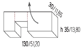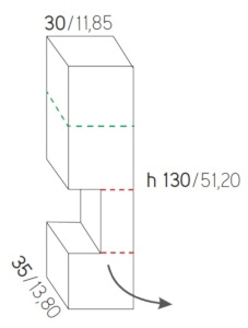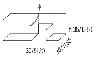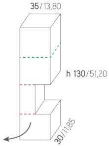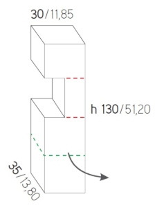 Dimensioni • L 130 x 30 x H 35 cm; • L 35 x 30 x H 130 cm