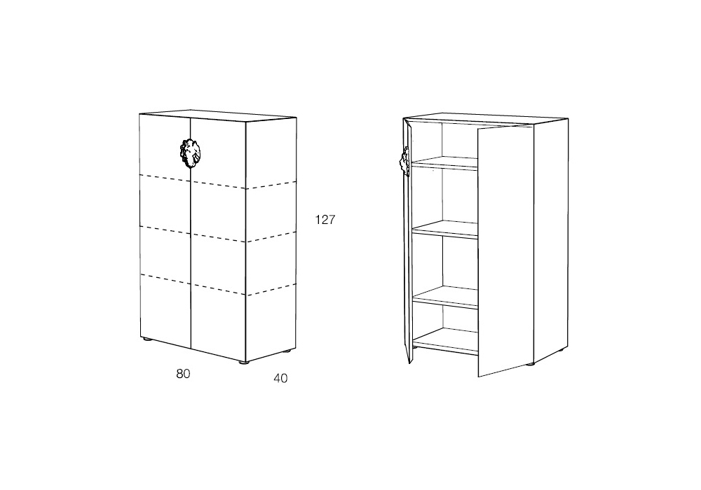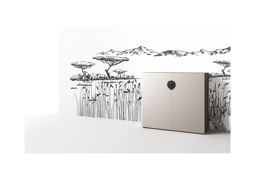 King firmata da DSH per Minotti Italia è una credenza / madia con ante battenti in agglomerato di legno, piedini regolabili. Finitura goffrata disponibile in diversi colori. Elemento decorativo (testa di leone) in metallo nickel nero. Due dimensioni disponibili.
