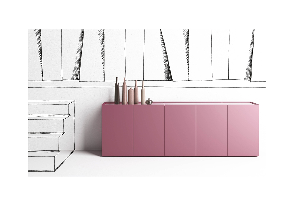 Km firmata da Claudio Bitetti per Minotti Italia è una credenza / madia in legno composto da top in unica lastra di specchio. Ripiani interni e piedini regolabili. Finitura goffrata disponibile in diversi colori. Struttura disponibile in tre dimensioni.