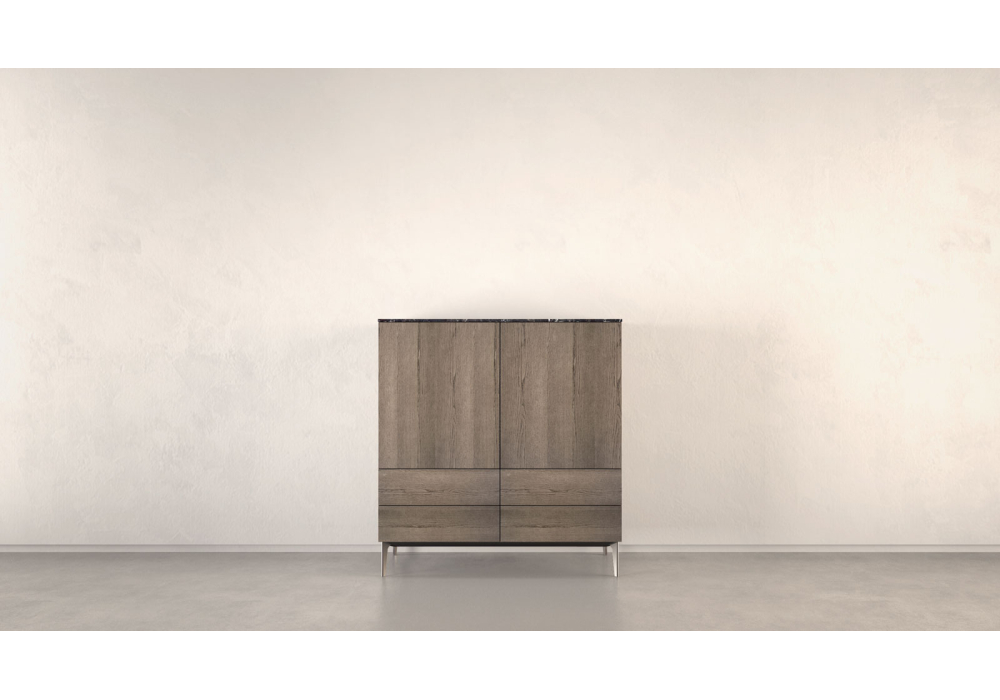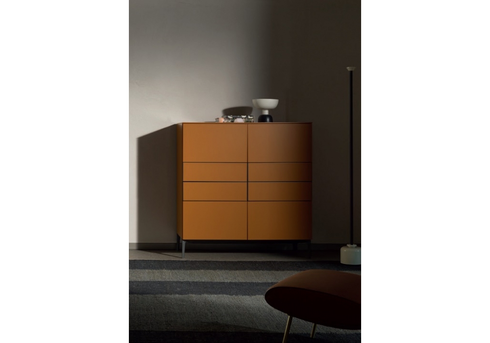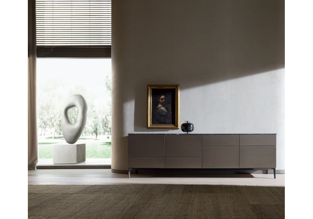 505 UP firmata da Nicola Gallizia per Molteni&C è una madia dai mille volti, proprio come le innumerevoli varianti e combinazioni delle sue facciate. Si presenta con una profondità dedicata e una doppia opzione per il basamento: a terra con zoccolo oppure con base metallica per una versione più leggera.