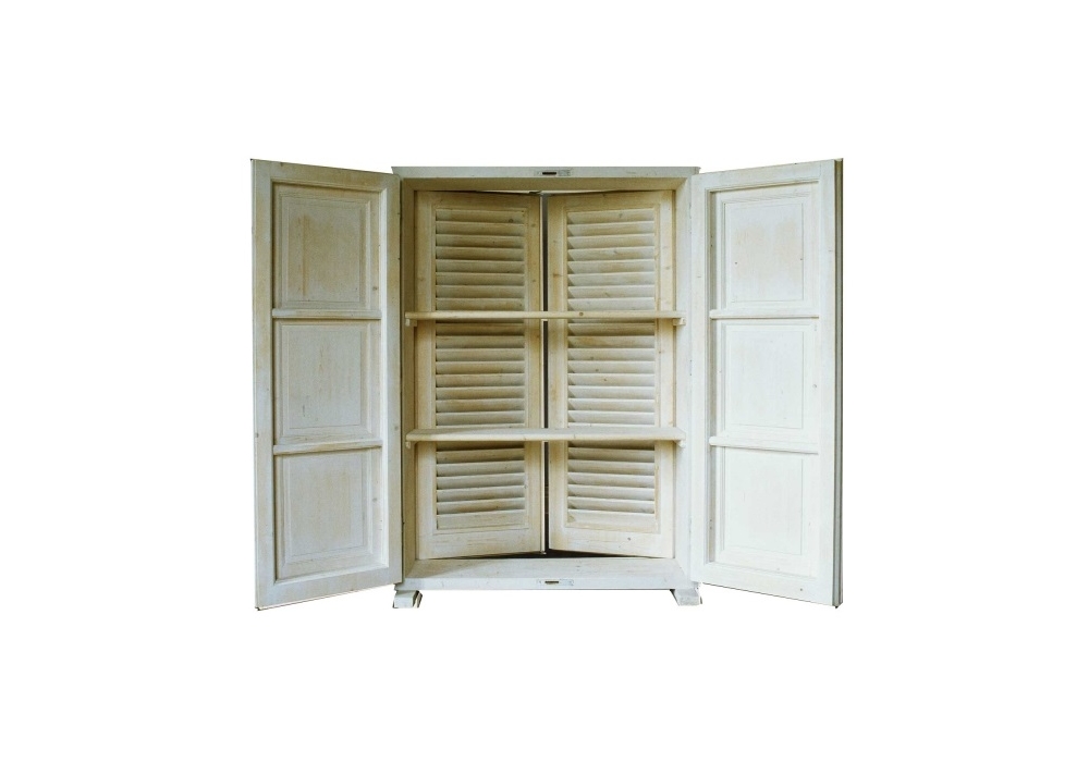 Persiana firmata da Marco Bagnoli per Memphis Milano è una credenza in legno bianco con ripiani a doppia apertura con ante a persiana. Edizione limitata di 25 pezzi.