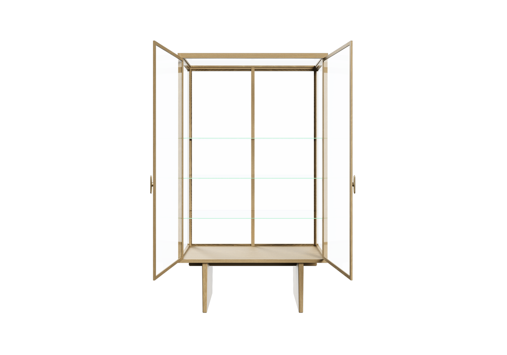 Private firmata da Space Copenhagen per Gubi è una vetrina realizzata in rovere impiallacciato. È disponibile in marrone/nero o tinto chiaro.