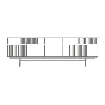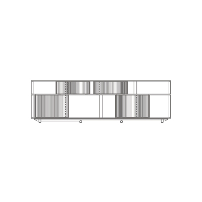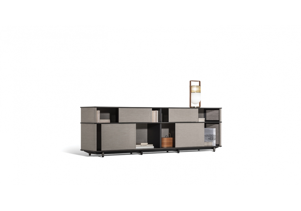 Lloyd Tex firmata da Jean-Marie Massaud per Poltrona Frau è una madia composta da montanti verticali realizzati in MDF impiallacciato rovere naturale. I fianchi sono chiusi da pannelli fissi realizzati con telaio in multistrato di betulla rivestiti in tessuto tecnico. Ripiani in laminato ad alta pressione impiallacciato in rovere naturale. Pannelli mobili che scorrono lungo binari scavati nelle mensole e “pattini” in plastica che riducono l'attrito tra le superfici. Sono fatti con una struttura in multistrato di betulla rivestita in tessuto tecnico.