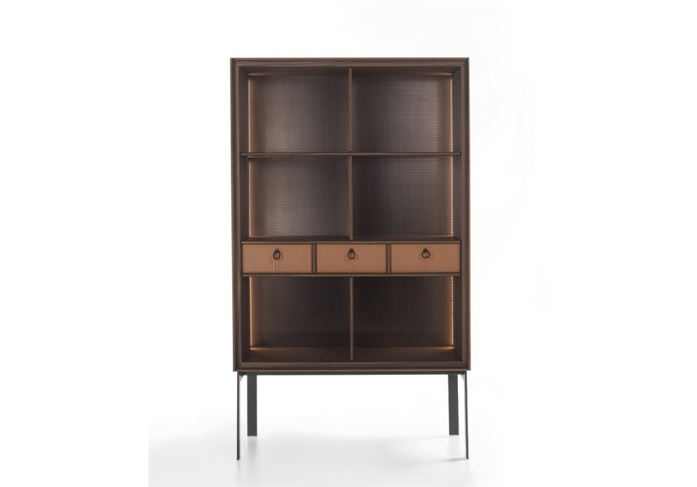 Matics 2 firmata da Gabriele & Oscar Buratti per Porada è una madia realizzata in in noce Canaletta, a giorno o con ante in vetro Stopsol super silver chiaro, con telaio e base in metallo finitura grigio peltro. Pannello posteriore disponibile in legno, metallo bronzo goffrato o Cuoio. Interno attrezzato con illuminazione a LED integrata dimmerabile tramite telecomando o APP. Possibilità di inserire max. tre cassetti con frontali in legno o in Cuoio.