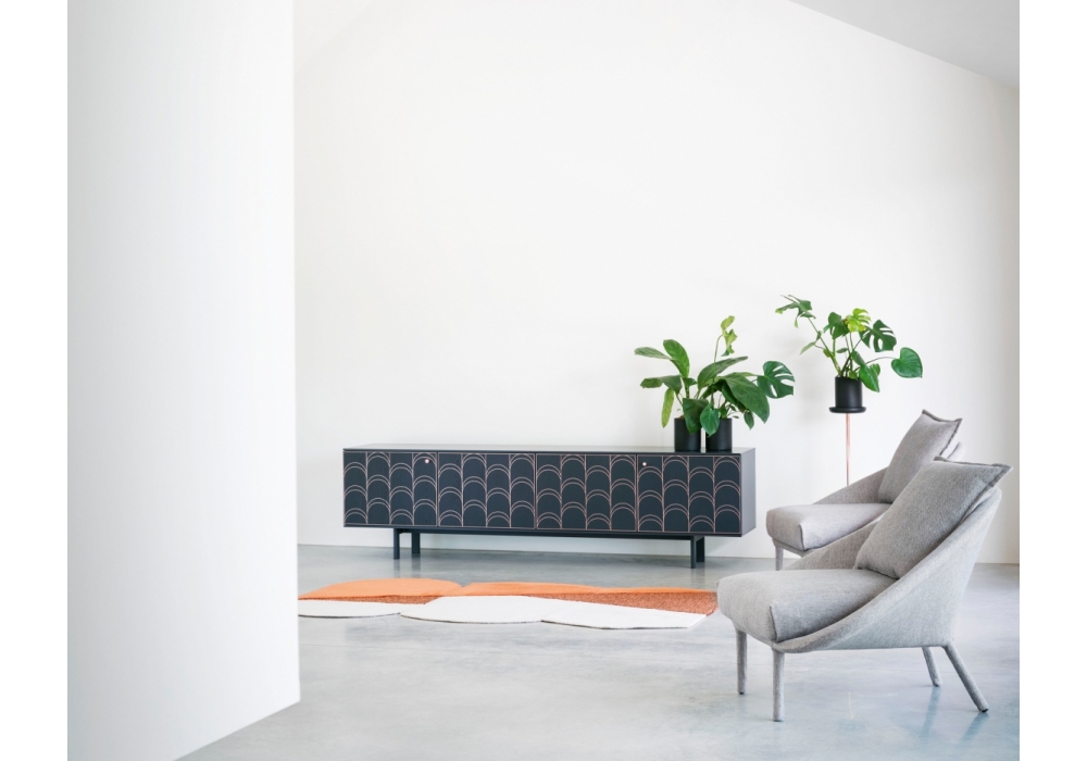 Célia firmata da Miniforms Labs è una madia con struttura laccata. Ante con apertura a soffietto, con disegno serigrafato su noce canaletto o frassino nero. Disponibile in diverse finiture e dimensioni.