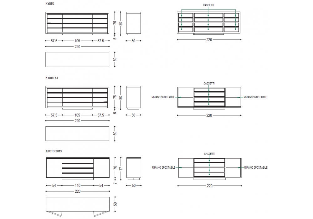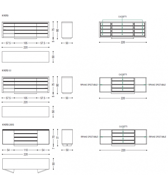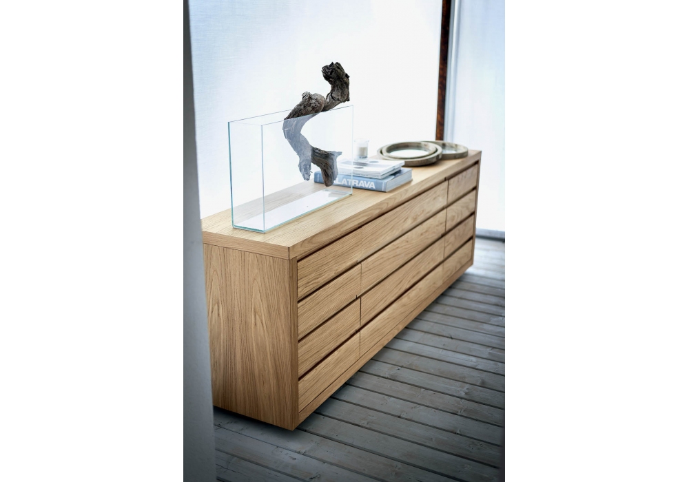 Kyoto firmata da C.R. & S. Riva1920 è una madia realizzata in legno massello e listellare. È disponibile in diverse versioni.