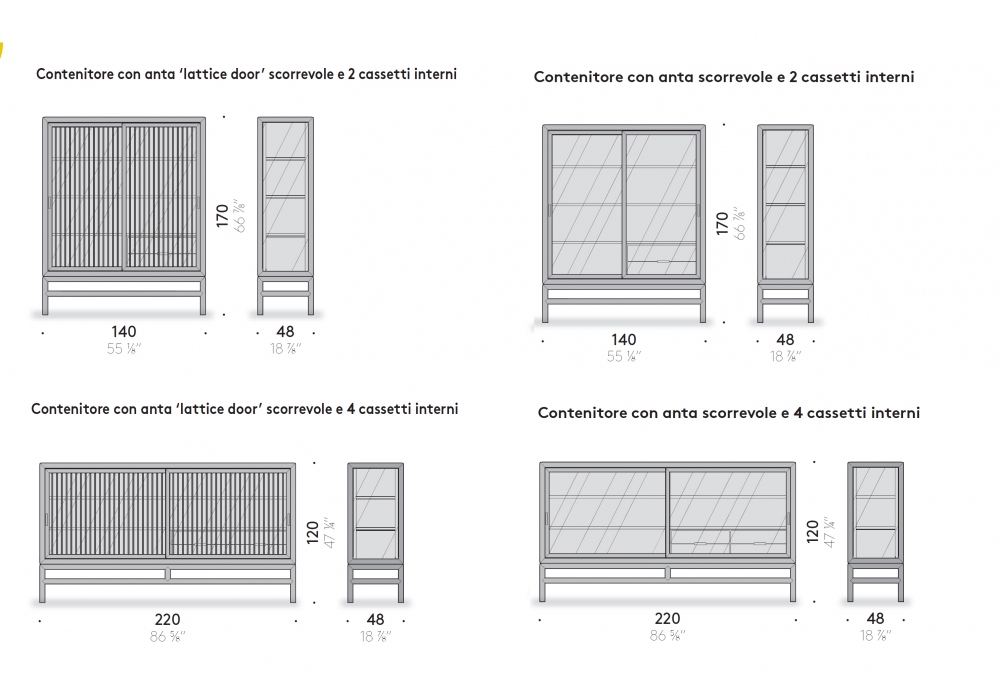 | Dimensioni | - 140 x 48 x 170 cm; - 220 x 48 x H 120 cm. |