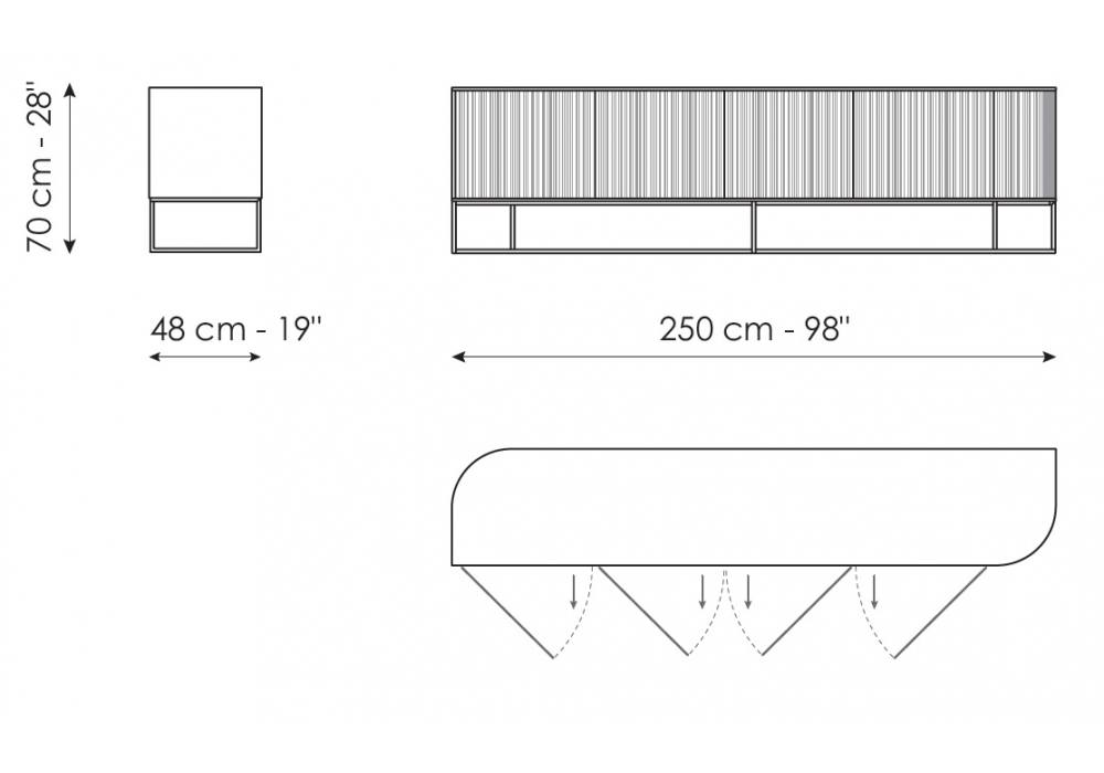 | Dimensioni | • 250 x 48 x H 70 cm |