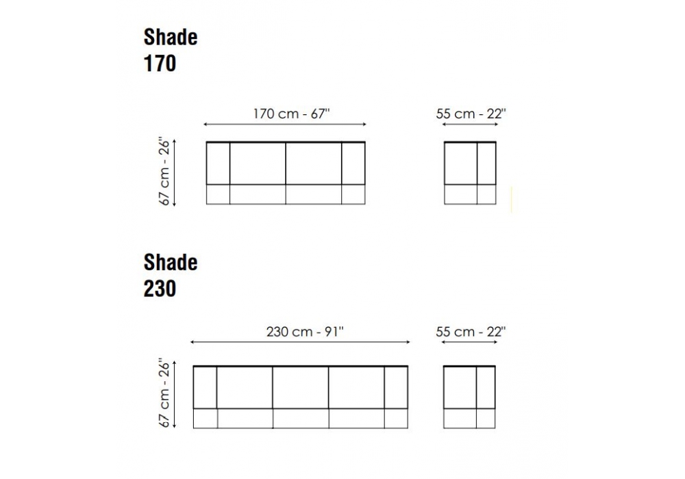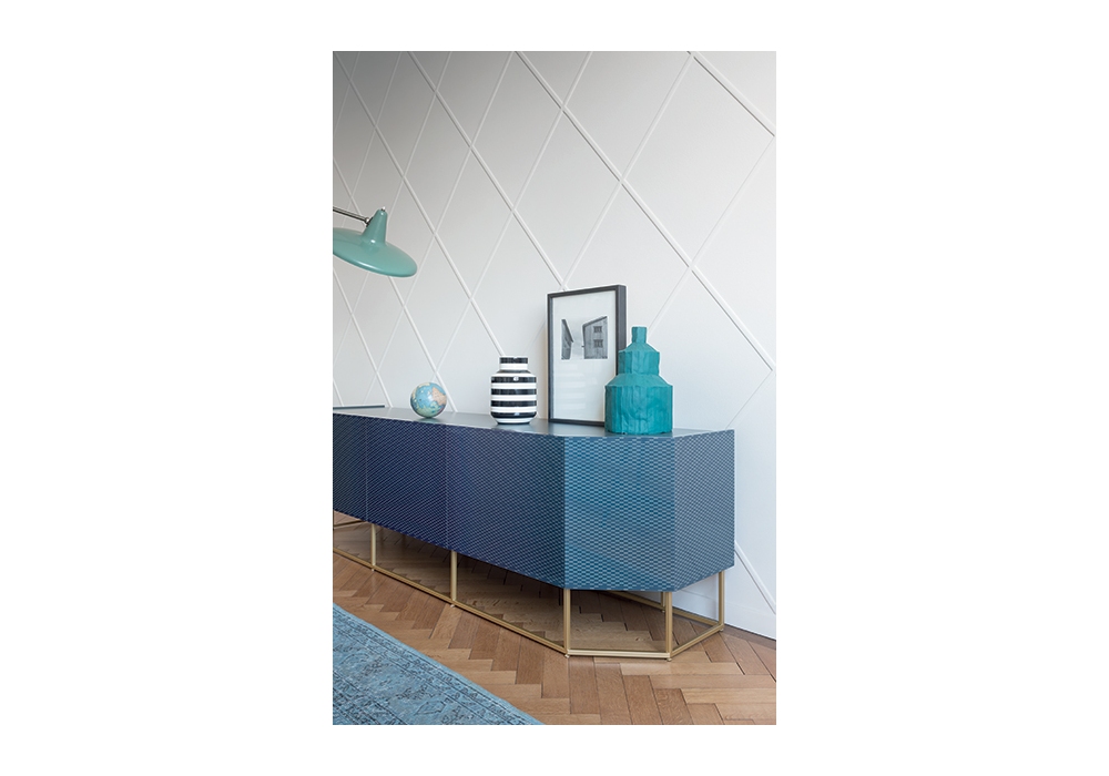 Shade firmata da Giuseppe Viganò per Bonaldo è una madia con struttura in legno laccato opaco verde e ante nello stesso materiale laccato con effetto iridiscente. La base è in metallo verniciato opaco in diverse finiture. I ripiani interni sono in legno (portata massima 15 kg). Disponibile in 2 modelli.