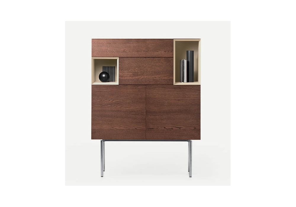 Brema firmata da Pianca è una madia realizzata con materiali, che spaziano dai laccati lucidi ed opachi, ai legni, ai materiali sintetici. Disponibile in diverse altezze e finiture del basamento per avere un design più schiacciato o più slanciato, raffinate maniglie in cuoio o l’essenziale sistema d’apertura delle ante push-pull.