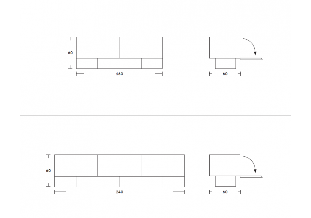 | Dimensioni | - 160 x 60 x H 60 cm; - 240 x 60 x H 60 cm. |