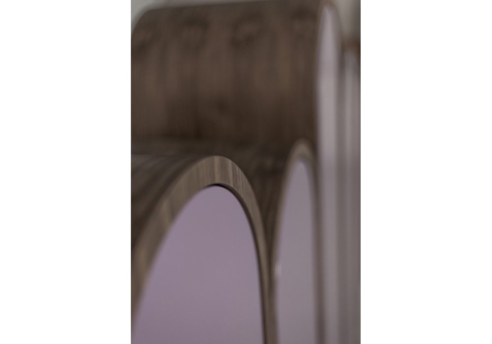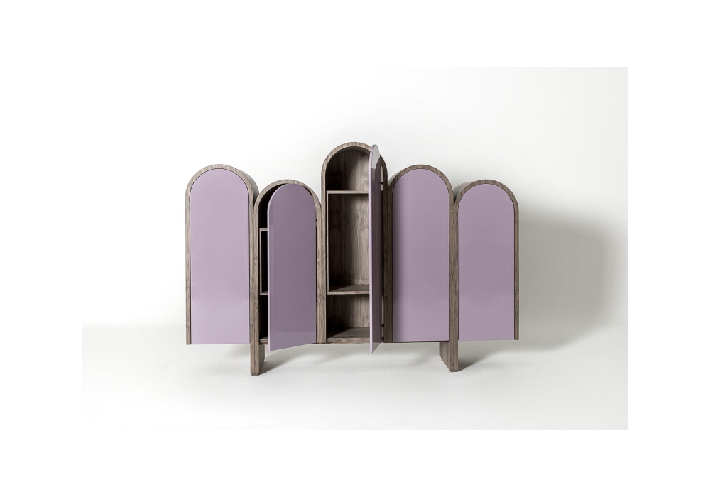 Portico firmata da Ferruccio Laviani per Emmemobili è una madia caratterizzata da una struttura a U, realizzata in legno multistrato curvato impiallacciato o laccato. Le ante hanno meccanismo di apertura premi-apri. Vani attrezzati con ripiani nella stessa essenza o finitura della struttura. Disponibile in differenti finiture e in due dimensioni.
