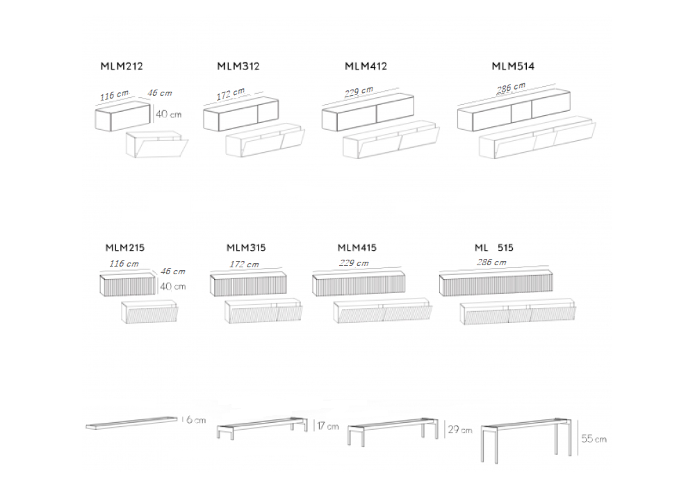 | Base | H 6 cm; H 17 cm; H 29 cm; H 55 cm. |