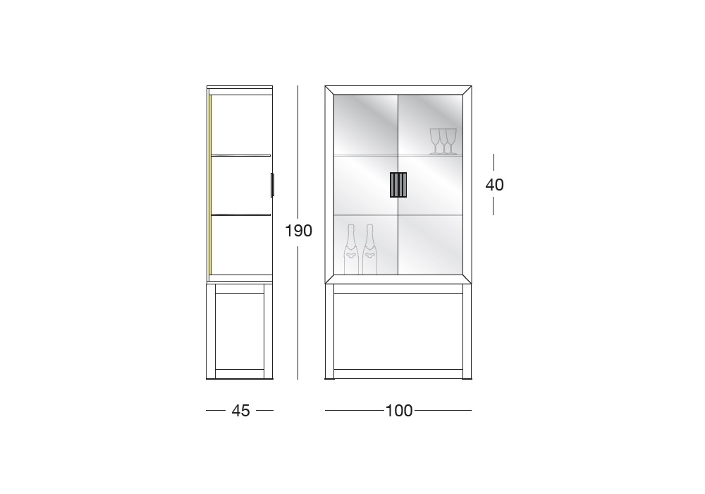 Orwell firmata da Giuseppe Viganò per Longhi è una vetrina con base e cornice in metallo rettificato, struttura in legno in essenza o laccato lucido e ante frontali in vetro bronzo o fumè con due mensole interne in cristallo trasparente. Maniglie in marmo. Sui lati dello schienale sono applicati due strip led dimmeabili con accensione a sfioramneto touch, che illuminano la parte interna del mobile.