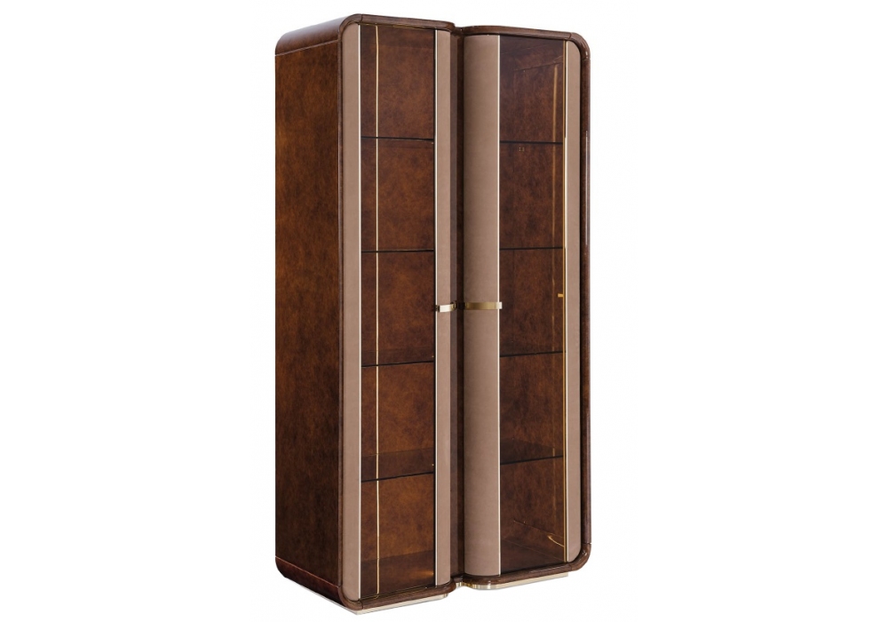 Madison firmata da Andrea Bonini per Turri è una vetrina con struttura in MDF e pannelli di particelle di legno in finitura laccata lucida. Sono presenti due ante in vetro bronzato con inserti in pelle con un pilastrino centrale realizzato in marmo, legno laccato lucido o in pelle. Disponibile in due dimensioni.
