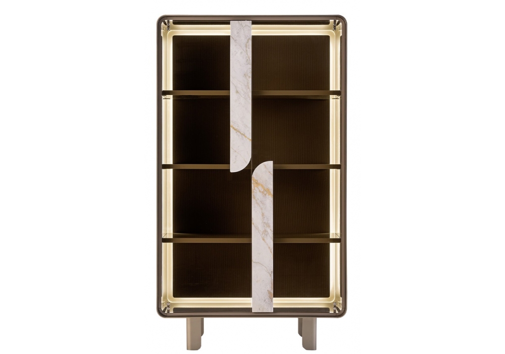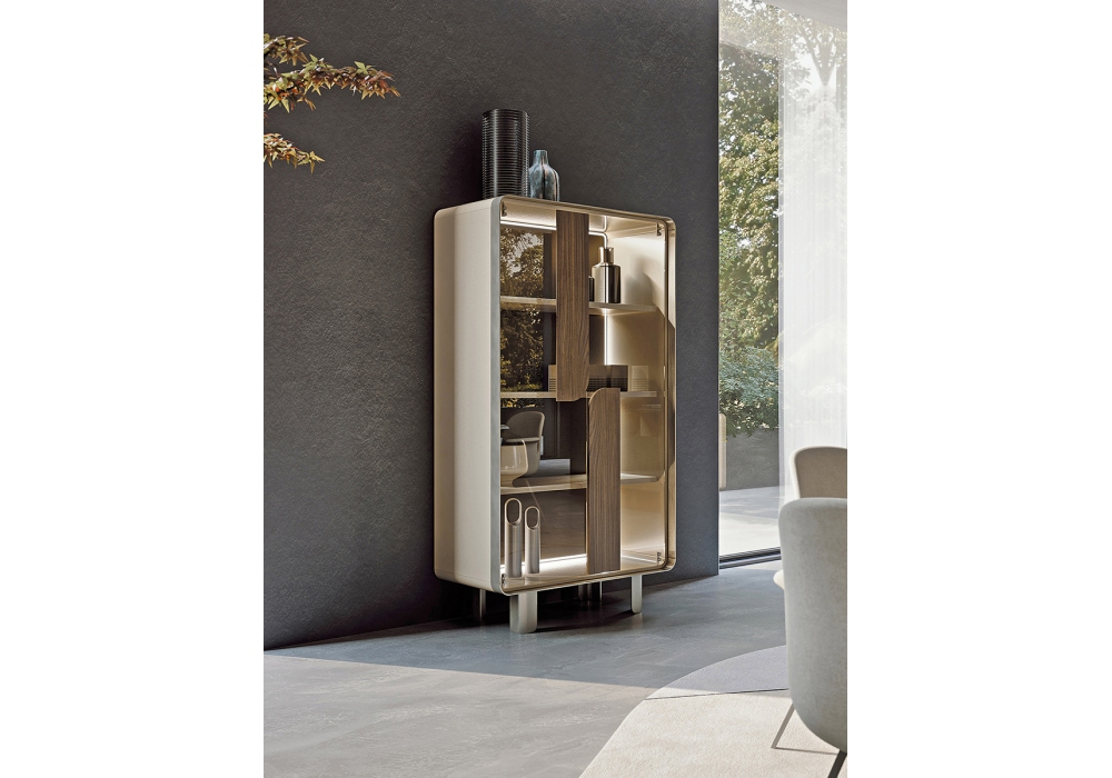 Soul firmata da Giuseppe Viganò per Turri è una vetrina con struttura in MDF e pannelli di particelle di legno finitura laccato lucido. Sono presenti due ante in vetro con maniglie in legno laccato lucido o in marmo. La parte interna dello schienale può essere rivestita in pelle o in legno laccato lucido. Parti metalliche e piedini in finitura opaca.