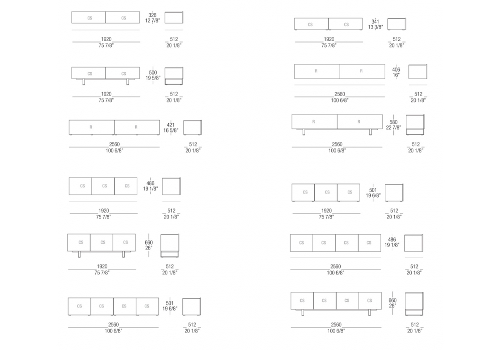 Square firmata da MisuraEmme è una collezione di madie a schema fisso disponibili con piedini regolabili o con base in metallo e in due lunghezze, attrezzabili con ante battenti, cassetti, ribalte e vani a giorno. Possibilità di avere un’intercapedine tra schienale e muro utilizzabile per il passaggio dei cavi TV. Finiture struttura esterna: laccato opaco, laccato lucido, essenza; struttura interna: nobilitato ambience, laccato opaco, essenza; Finiture ante, cassetti e ribalta: laccato opaco, lucido o essenza e piano in legno, marmo, vetro acidato verniciato o vetro verniciato.