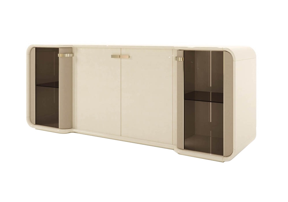 Madison firmata da Andrea Bonini per Turri è una madia con struttura in MDF e pannelli di particelle di legno impiallacciato in finitura lucida. Due ante sono realizzate in vetro bronzato con inserti in pelle e due in legno in finitura laccata lucida. All'interno sono presenti due vani laterali con un ripiano in vetro bronzato e un vano centrale con un ripiano laccato lucido. É possibile aggiungere un set di illuminazione led con o senza sensore.