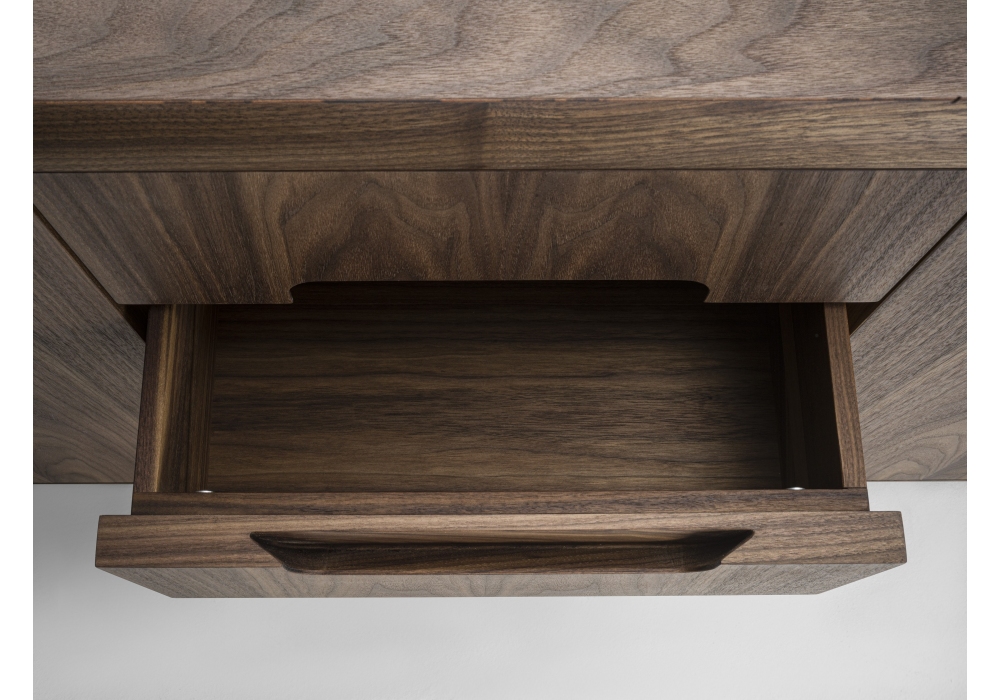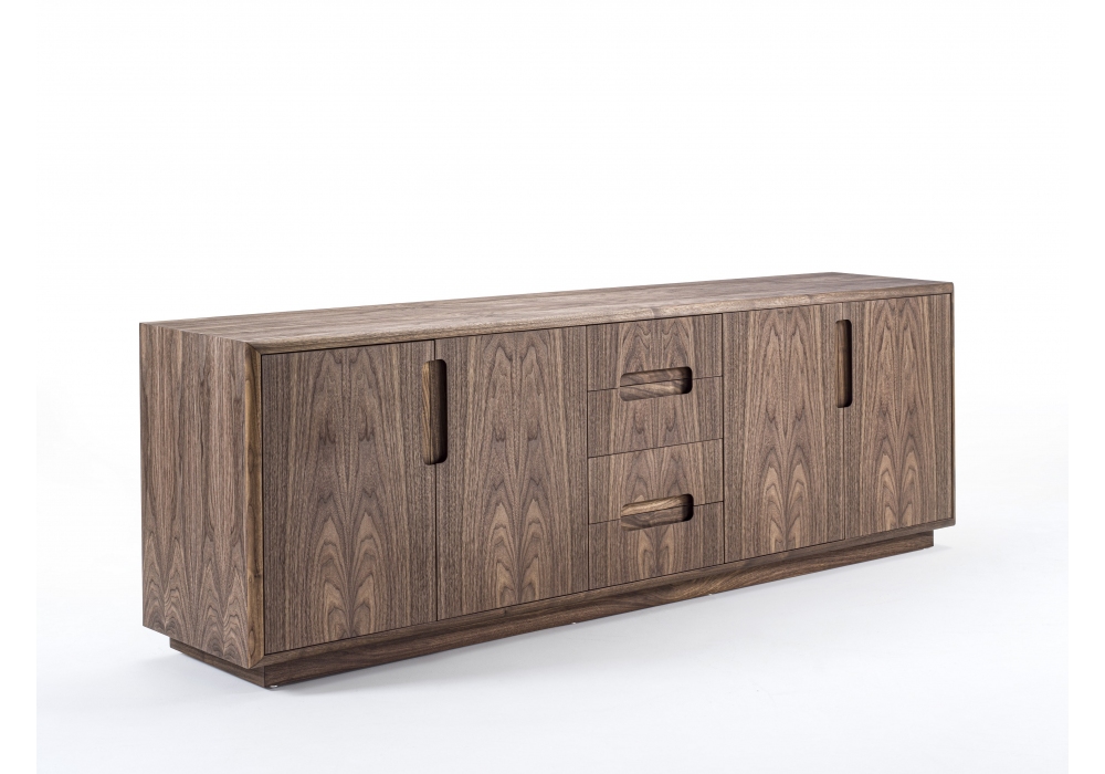 Sospiro Low firmata da Claudio Bellini per Riva 1920 è una madia in legno massello e listellare. Munita di quattro ante a battente e quattro cassetti con maniglia incassata e sagomata. Cassetti assemblati con incastri a coda di rondine. Struttura con bordi stondati.