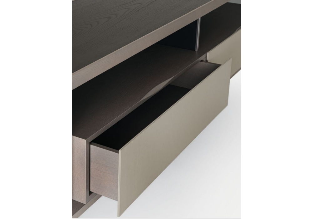 Kukei firmata da Mauro Lipparini per Giorgetti è una madia disponibile in due versioni: simmetrica o asimmetrica. Entrambe le versioni sono disponibili con un basamento in metallo verniciato finitura pewter e piedini in metallo verniciato finitura pewter e massello di frassino in diverse finiture, oppure con basamento in frassino, nelle stesse varianti. Il piano è disponibile in frassino, marmo o pelle. La cassettiera è in frassino e i frontali dei 2 cassetti sono rivestiti in pelle. La parte posteriore della cassettiera è illuminata da un profilo LED.