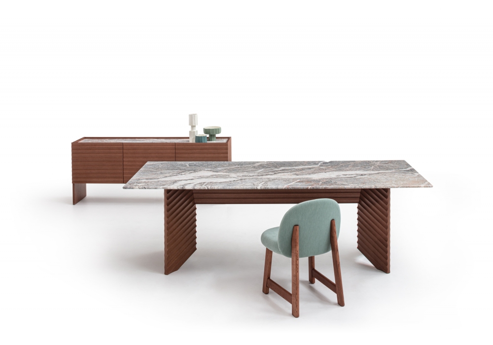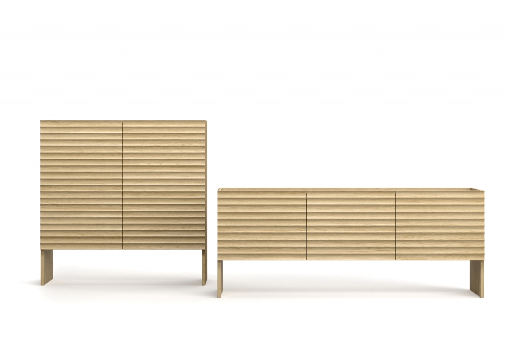 Rows firmata da Patricia Urquiola per Moroso è una madia con struttura in MDF impiallacciato rovere e piano in marmo o vetro. Le combinazioni di colori (struttura/top) sono definite e vincolate dal progettista: