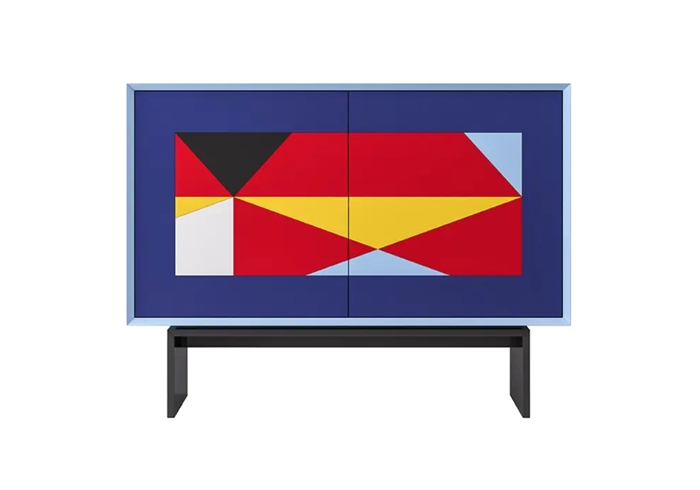 Line firmata da Alessandro Mendini per Porro è una madia in edizione limitata realizzata con intarsio in acetato di cellulosa. È disponibile in due versioni da 50 pezzi ciascuna.