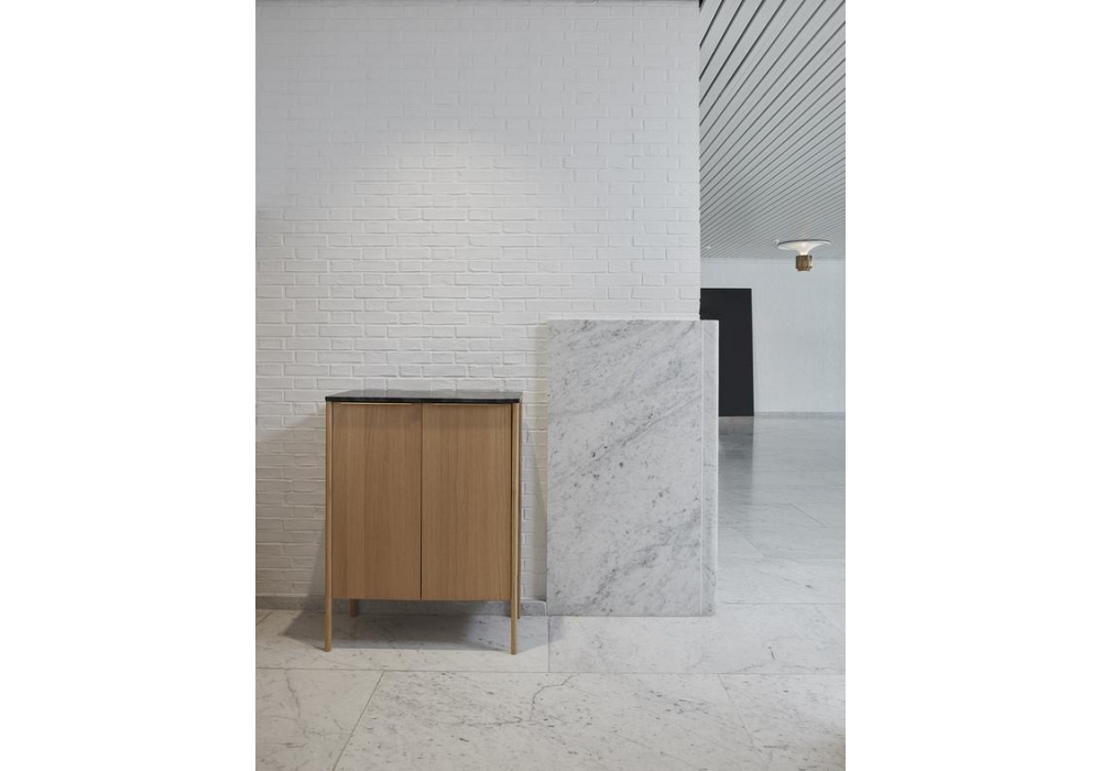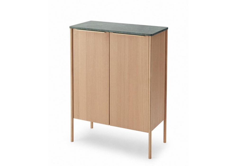 Jut High firmato da Thomas Jenkins per Skagerak è un mobile contenitore realizzato in rovere e dettagli in ottone. Top in rovere o in marmo. Disponibile in diverse finiture.