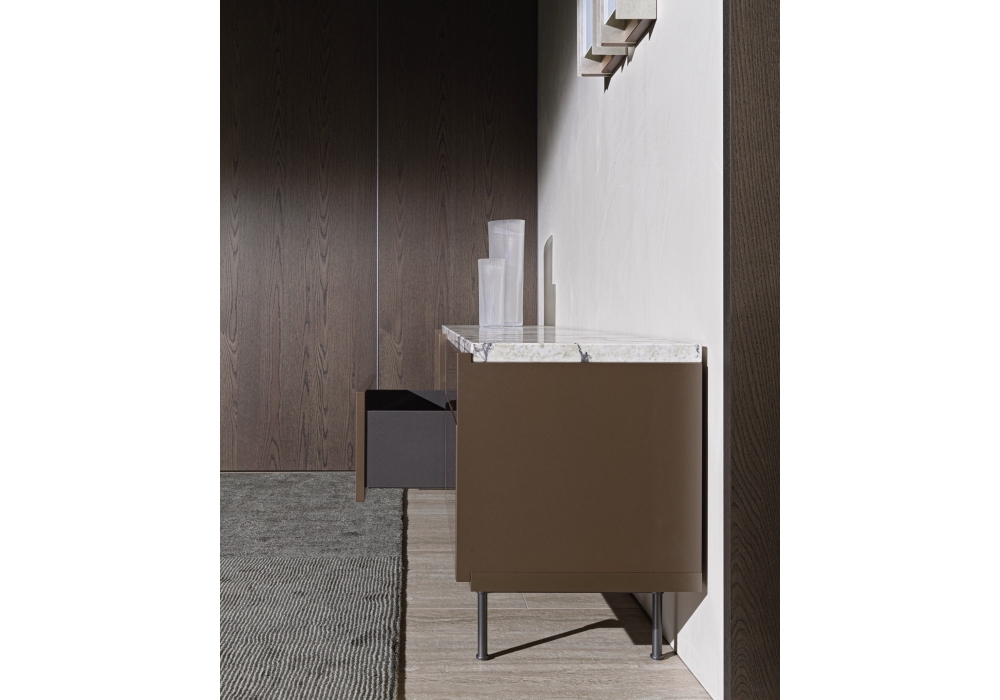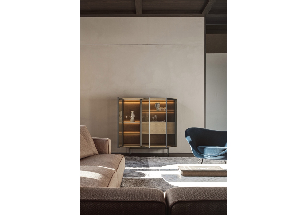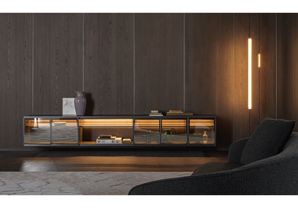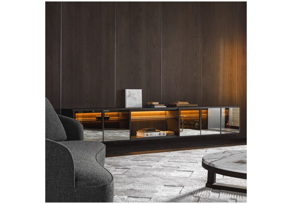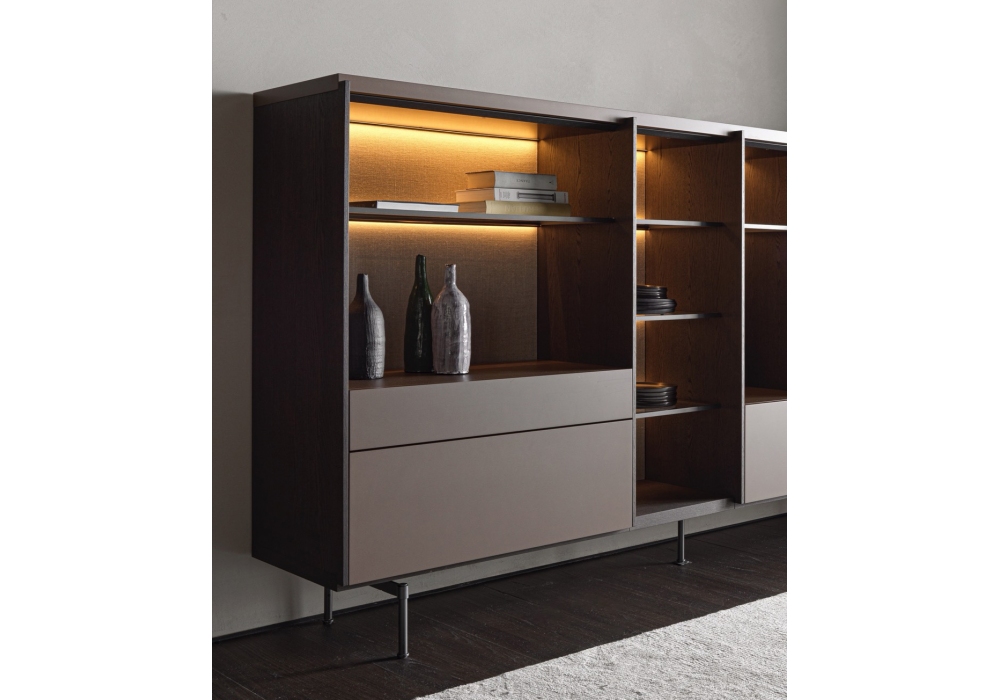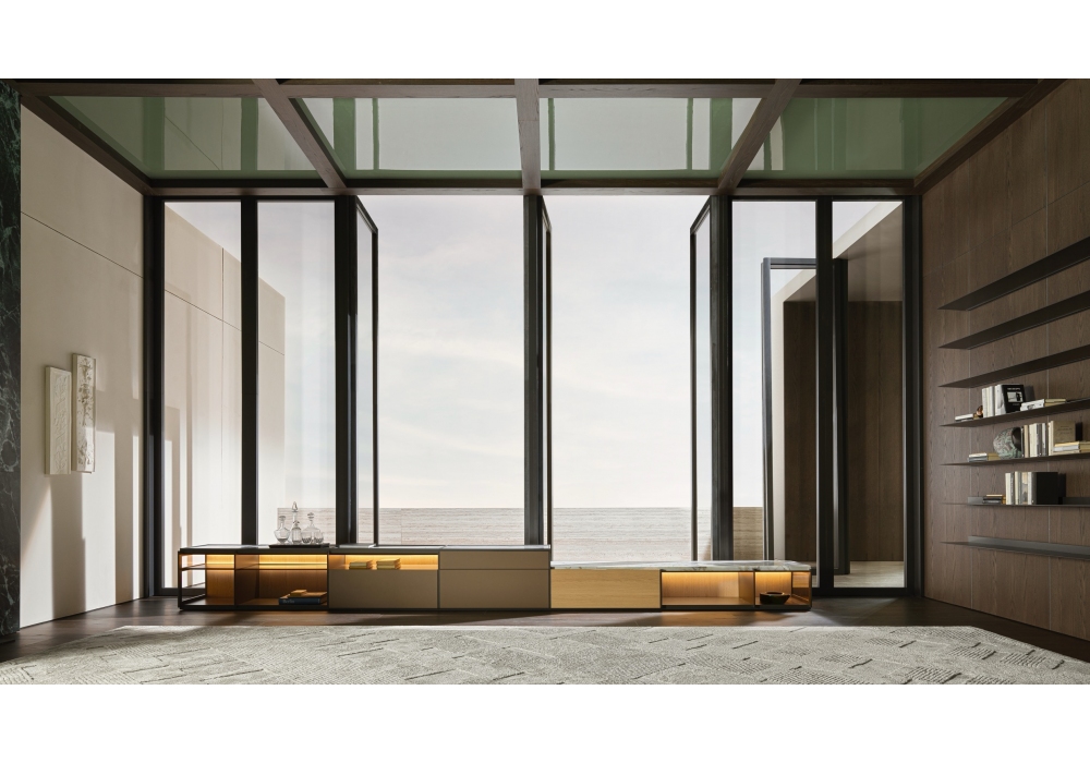 Logos firmato da Vincent Van Duysen per Molteni&C è un sistema di pareti attrezzate componibile per la zona giorno, caratterizzato da modularità, versatilità e materiali sofisticati. Con infinite configurazioni possibili, permette di personalizzare lo spazio secondo gusti e esigenze funzionali. I suoi moduli possono essere combinati per massimizzare l'estetica e la funzionalità, offrendo soluzioni pratiche come cassettoni per nascondere cavi e accessori. Disponibile in diverse dimensioni e finiture, è una soluzione completa e personalizzabile per arredare la zona giorno.