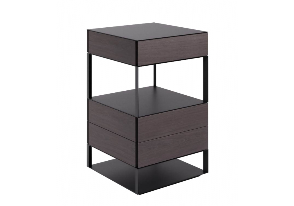 Halfsquare firmato da Giacomo Moor per Living Divani è un comodino di forma quadrangolare con struttura portante in metallo verniciati a polveri con base di appoggio in MDF nero. I cassetti sono in MDF impiallacciato color noce canaletto o striped gray con spondine in metallo di colore nero carbone opaco, mentre il fondino e lo schienale sono in MDF laccato nero opaco. I piedini di appoggio sono regolabili in PVC di colore nero. Halfsquare è disponibile in differenti finiture e modelli.
