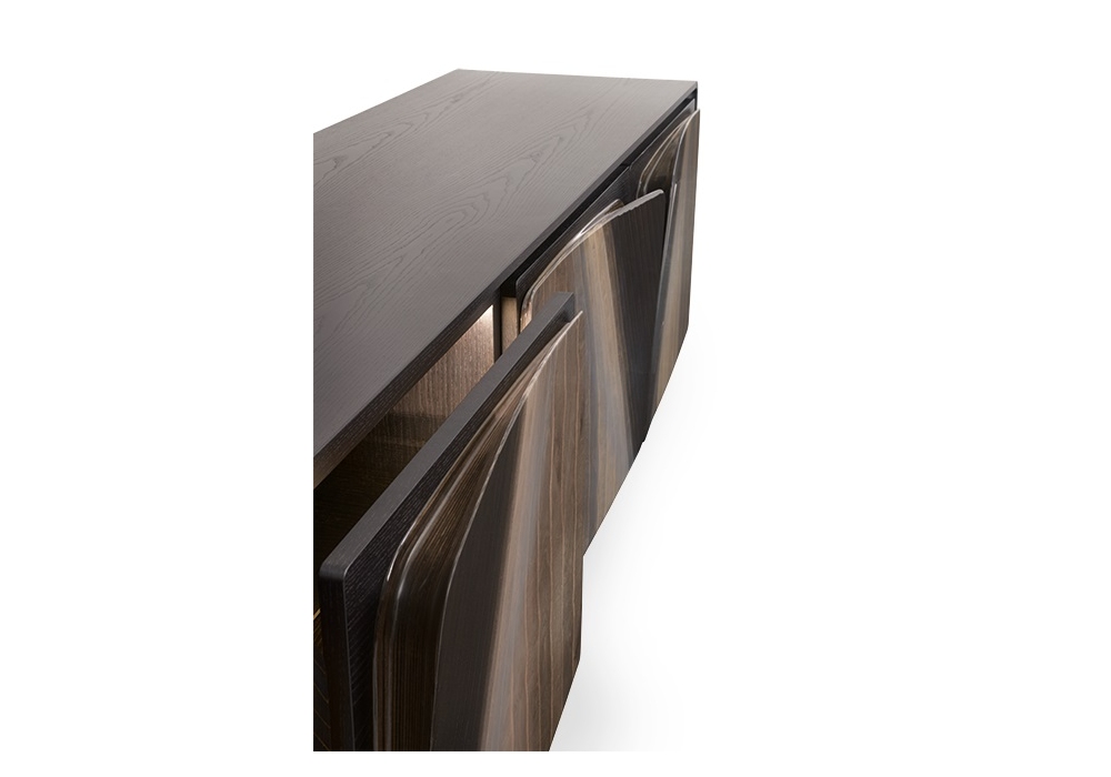 Scirocco firmato da Draga & Aurel per Giorgetti è un mobile contenitore realizzato in frassino con ante in multistrato di betulla.