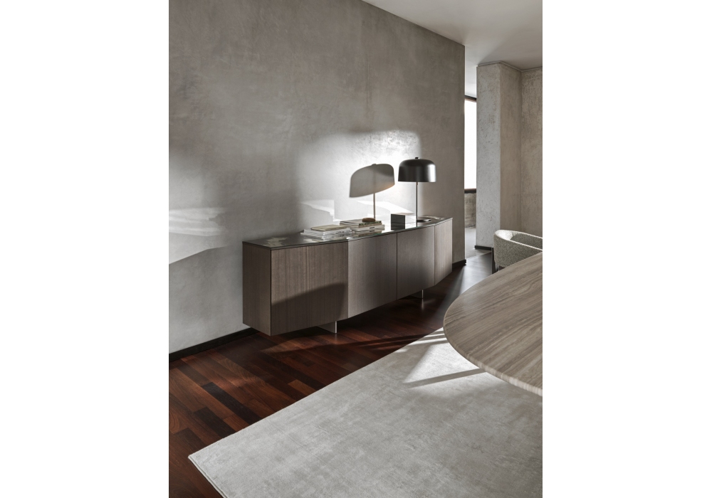Angle firmato da Daniele Lo Scalzo Moscheri per Ditre Italia è una madia con struttura in legno. Piano e ante disponibili in legno o specchio in diverse combinazioni. Base in metallo verniciato marrone chiaro.