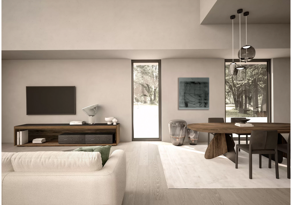 Dream firmata da Authentic Design per Riva 1920 è una madia in legno massello e listellare, a giorno, con cornice in legno e due cassetti assemblati con tradizionale incastro a coda di rondine. Top incassato, luci a LED a illuminare il vano a giorno.