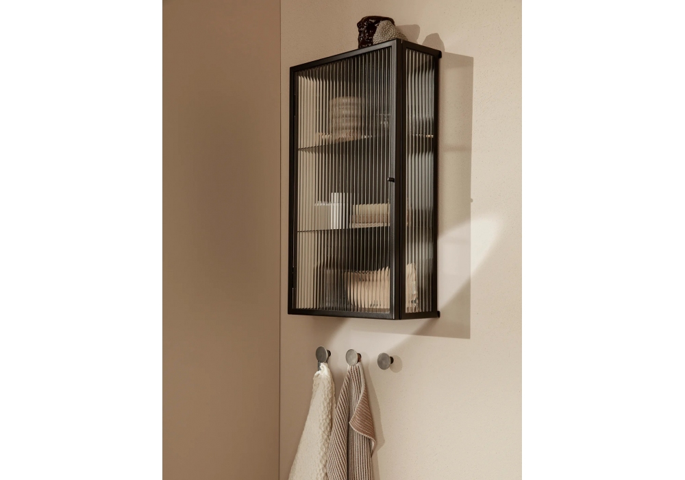 Haze firmato da Ferm Living è un mobile contenitore con anta in vetro rigato e struttura in ferro verniciato a polvere, disponibile in diverse finiture. Un pratico mobiletto a parete per riporre gli oggetti più piccoli, perfettamente adatto per riporre gli occhiali in cucina o gli essenziali di bellezza in bagno. Funziona altrettanto bene anche in un corridoio pieno di oggetti di uso quotidiano come chiavi e occhiali da sole.