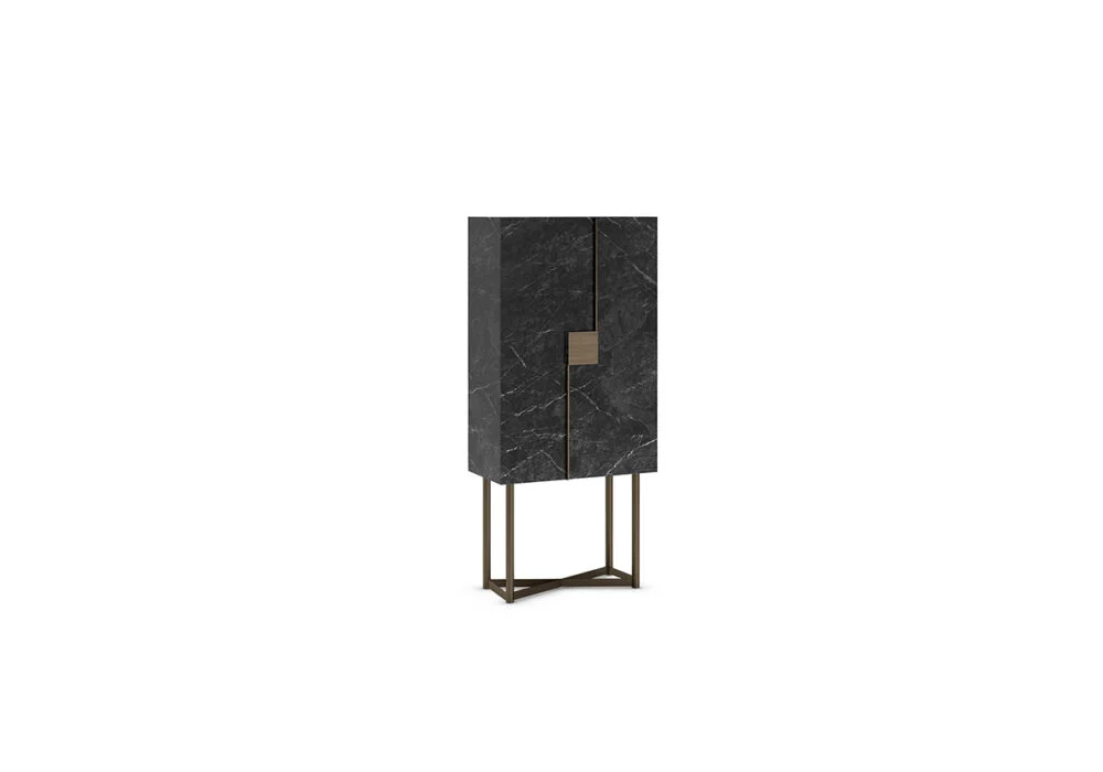 Musa firmata da Lino Codato per Reflex Angelo è una madia con struttura un legno rivestito in Marmoreflex/Legnoreflex. Dettaglio maniglie e basamento in metallo in finitura Bronze