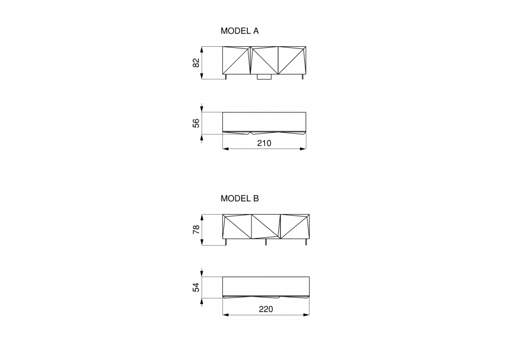 | Dimensioni | 210 x 56 x H 82 cm; 220 x 54 x H 78 cm. |