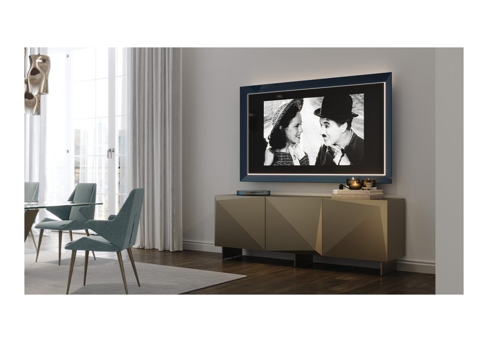 Origami Maxi firmata da Reflex Angelo è una credenza in legno con 3 ante. Ripiani interni in vetro. Gambe in vetro trasparente o in metallo finitura bronzo.