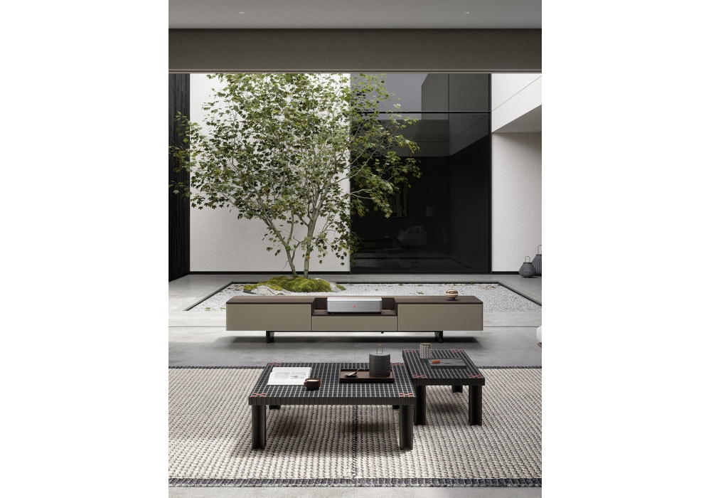 Fidelio Multimedia Cabinet firmato da da Roberto Lazzeroni in collaborazione con Leica per Poltrona Frau, è un mobile elegante e tecnologico pensato per il proiettore Leica Cine 1. Realizzato in frassino tinto moka e acero naturale, ospita un top con sportello motorizzato che cela il telo di proiezione. Include due cassetti laterali con sistema push-pull e frontali in cuoio, e un vano centrale estraibile per posizionare il proiettore. Il basamento in frassino e acciaio nero opaco è dotato di piedini regolabili. Retro con pannelli removibili per passaggio cavi e ispezione. Disponibile con cuciture tono su tono o a contrasto.