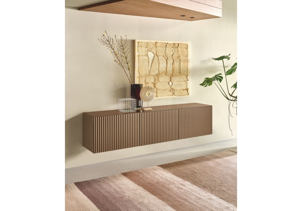 Onda firmata da Riflessi è una madia sospesa realizzata in legno laccato o verniciato spazzolato a mano. Il piano è in legno, cristallo o ceramica in numerose finiture. Disponibile in diverse dimensioni.