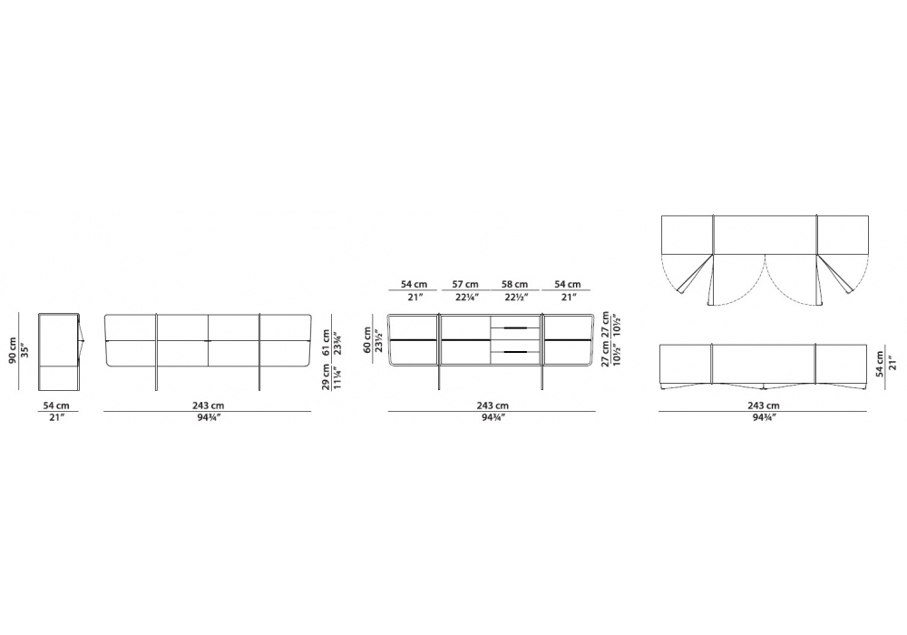 Pierce firmata da Draga & Aurel per Baxter è una madia con struttura laccata lucida ed ante, frontalini, cassetti e schienale rivestiti in pelle. Ripiani interni in vetro extrachiaro bisellato spessore 15 mm. Gambe e dettagli in metallo con finitura a scelta. Piedini regolabili.