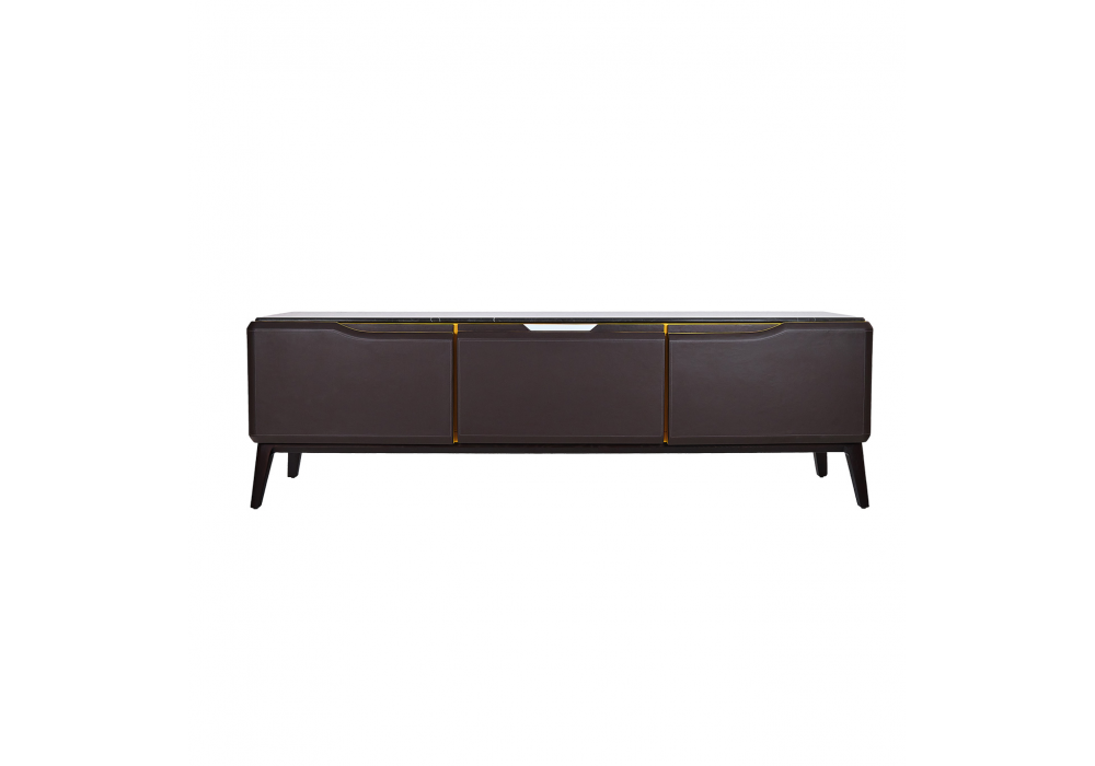 Accento firmata da Vista Alegre è una credenza realizzata con gambe in legno, rivestimento in pelle e piano in pietra marquina.