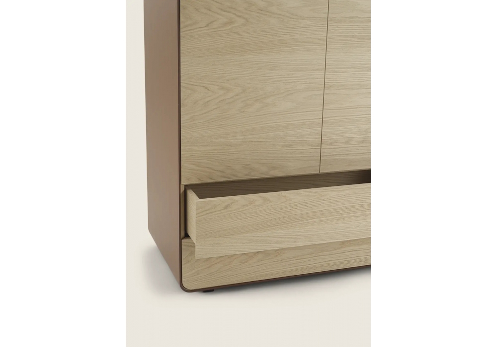 Clarence firmato da Antonio Citterio per Flexform è un mobile contenitore con struttura in legno, disponibile in diverse finiture. Rivestimento in cuoio in diversi colori. Appoggio a terra su piedi in legno verniciati nero opaco. Disponibile con due o tre cassetti.