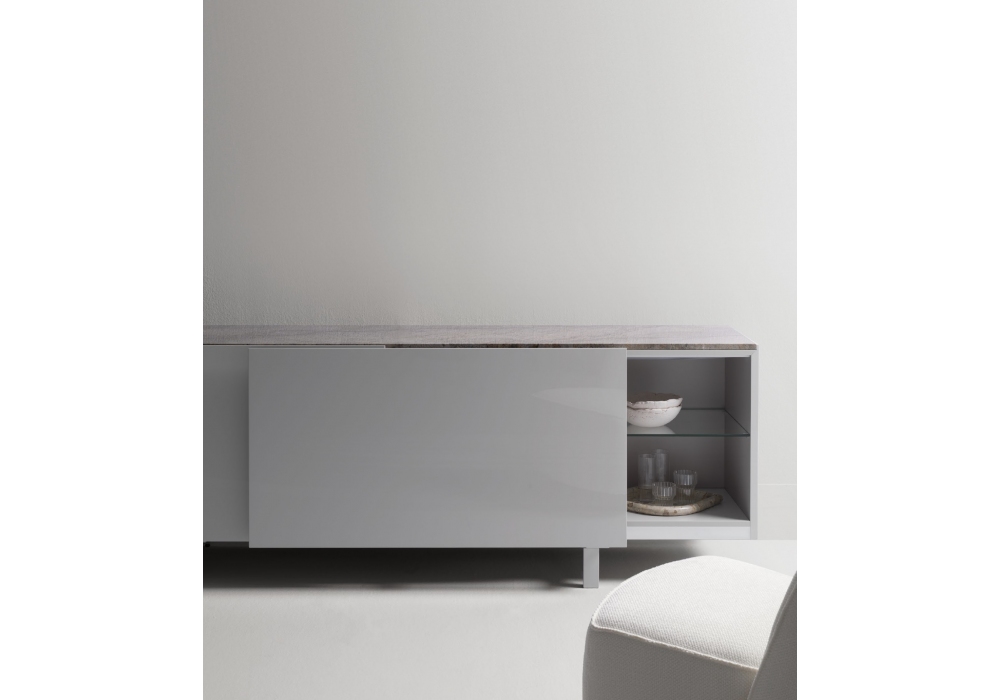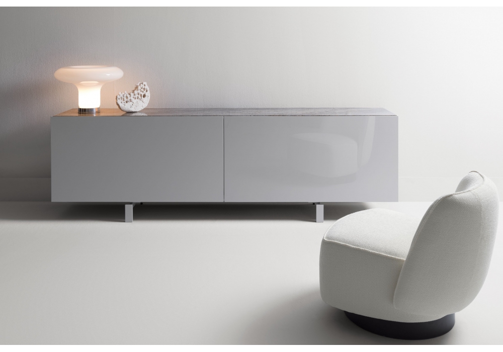 Teatro, progettata e firmata da R&S Désirée, è una madia dal design contemporaneo che unisce estetica e funzionalità. Le ante scorrevoli complanari creano una superficie continua ed elegante, donando al mobile un forte carattere architettonico. L’interno, rifinito con laccatura opaca in perfetta armonia con i frontali, esalta la coerenza visiva e la compattezza del volume. Il sistema di apertura scorrevole consente di modulare lo spazio con discrezione, permettendo di mostrare o nascondere il contenuto a seconda delle esigenze. Una soluzione raffinata, ideale per ambienti moderni che ricercano pulizia formale e versatilità.