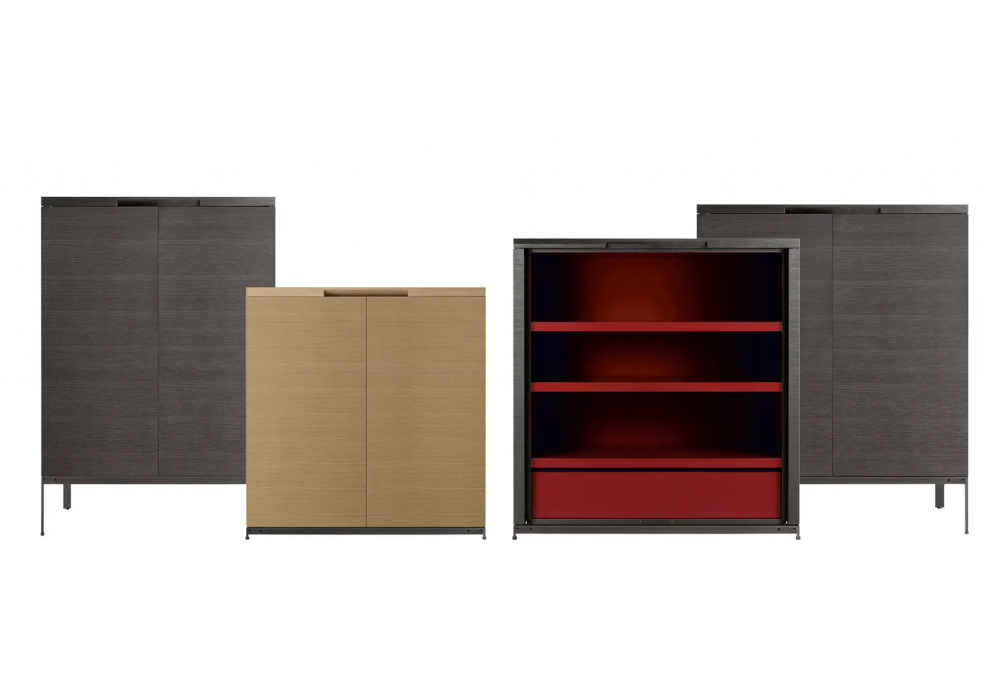 Mida firmata da Antonio Citterio per Maxalto è una credenza con due ante a battente. Basamento in acciaio cromato lucido, verniciato nickel bronzato o verniciato nero. Struttura in rovere grigio, rovere chiaro spazzolato, rovere nero spazzolato o Wengè naturale. Gli interni dei contenitori sono in essenza o verniciati lucidi colore rosso mattone. Le ante hanno un'apertura a 270°.