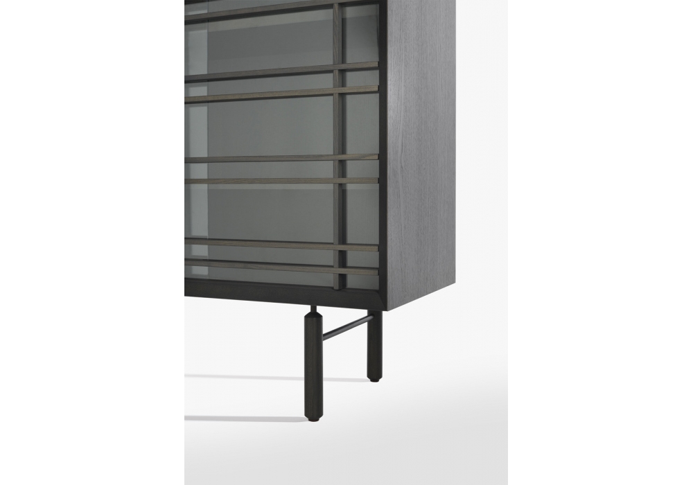 Sen firmato da Chiara Andreatti per Potocco è un mobile contenitore con struttura in massello di frassino. Ante scorrevoli in vetro float temperato bronzo o trasparente.