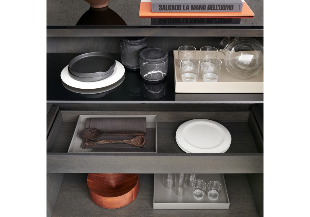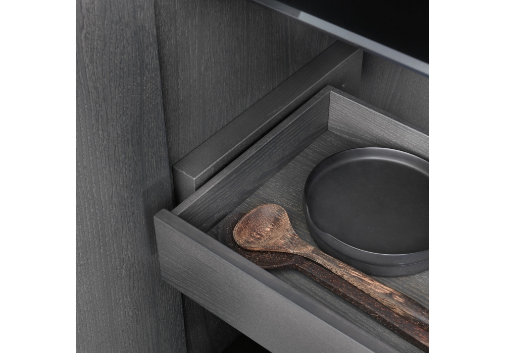 Avant firmato da Gabriele e Oscar Buratti per Potocco è un mobile contenitore con struttura in frassino e gambe in pttone brunito. Piano superiore in marmo, vetro retroverniciato nero o frassino. All’interno sono presenti 2 ripiani in vetro nero temperato e, su richiesta, cassetti opzionali.