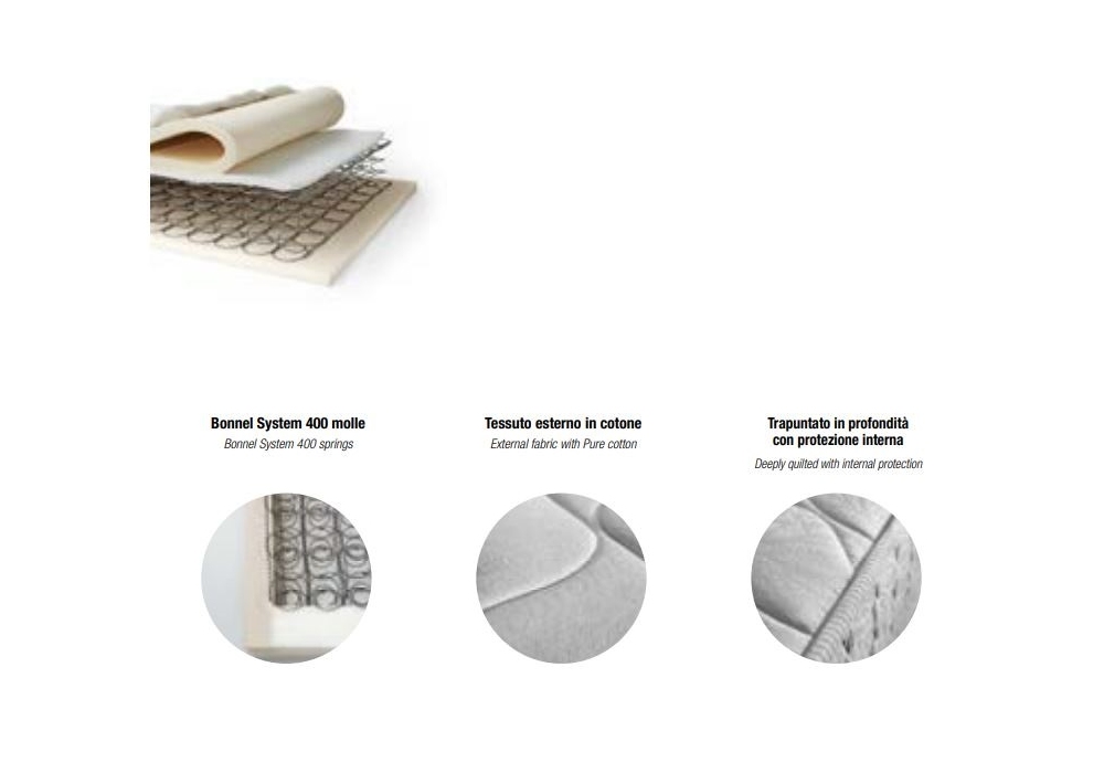 Ginevra firmato e prodotto da Twils è un materasso ortopedico con Bonnel System 400 molle. Il tessuto esterno è in puro cotone, trapuntato in profondità con protezione interna. Imbottitura mistolana, box Aquatech lastre lisce e longheroni laterali rinforzati. Disponibile in diverse dimensioni. Alto 21 cm.