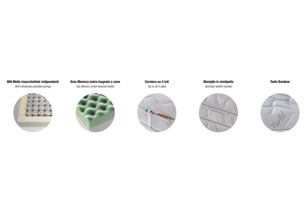 Deluxe Memory firmato e prodotto da Twils è un materasso con 800 molle insacchettate indipendenti, dotato di cerniera su 4 lati e maniglie laterali in similpelle. Contiene box Aquatech con Soia Memory lastre bugnate e longheroni laterali rinforzati. Fodera esterna rimovibile in tessuto Twils Bamboo. Disponibile in più dimensioni. Alto 24 cm.
