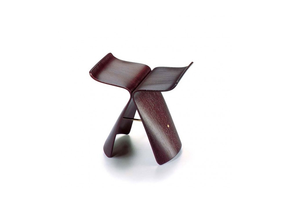 Vitra Miniature Butterfly stool: Il progettista Sori Yanagi adotta una forma familiare occidentale e li combina con una tecnica impiegata da Charles e Ray Eames, che comprendono l'utilizzo di compensato curvato per la produzione industriale. Lo sgabello è insolitamente realizzabile, con due forme identiche asimmetriche collegati per mezzo di due viti sotto il sedile e una avvitata da un'asta di ottone. Questo crea una forma che ricorda in qualche modo del tori situati davanti ai santuari scintoisti. Al tempo stesso richiama alla mente le ali di una farfalla, da qui il suo nome. Lo sgabello è stato premiato con la medaglia d'oro alla triennale di Milano 1957. Compensato curvato, ottone.